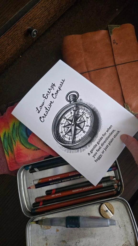 If you are one of my regular supporters on Patreon or Substack, I have made a little playbook called 'Low-Energy Creative Compass: A gentle guide for when you feel directionless, foggy or just plain stuck.